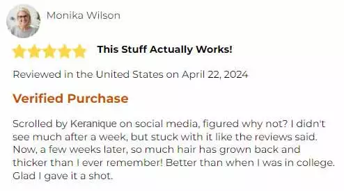 Clinical trials of Keranique have uncovered that 98% of women who used the system were able to regrow at least 24% of their lost hair. But many women grow back significantly more than that if they have already lost a lot of hair.